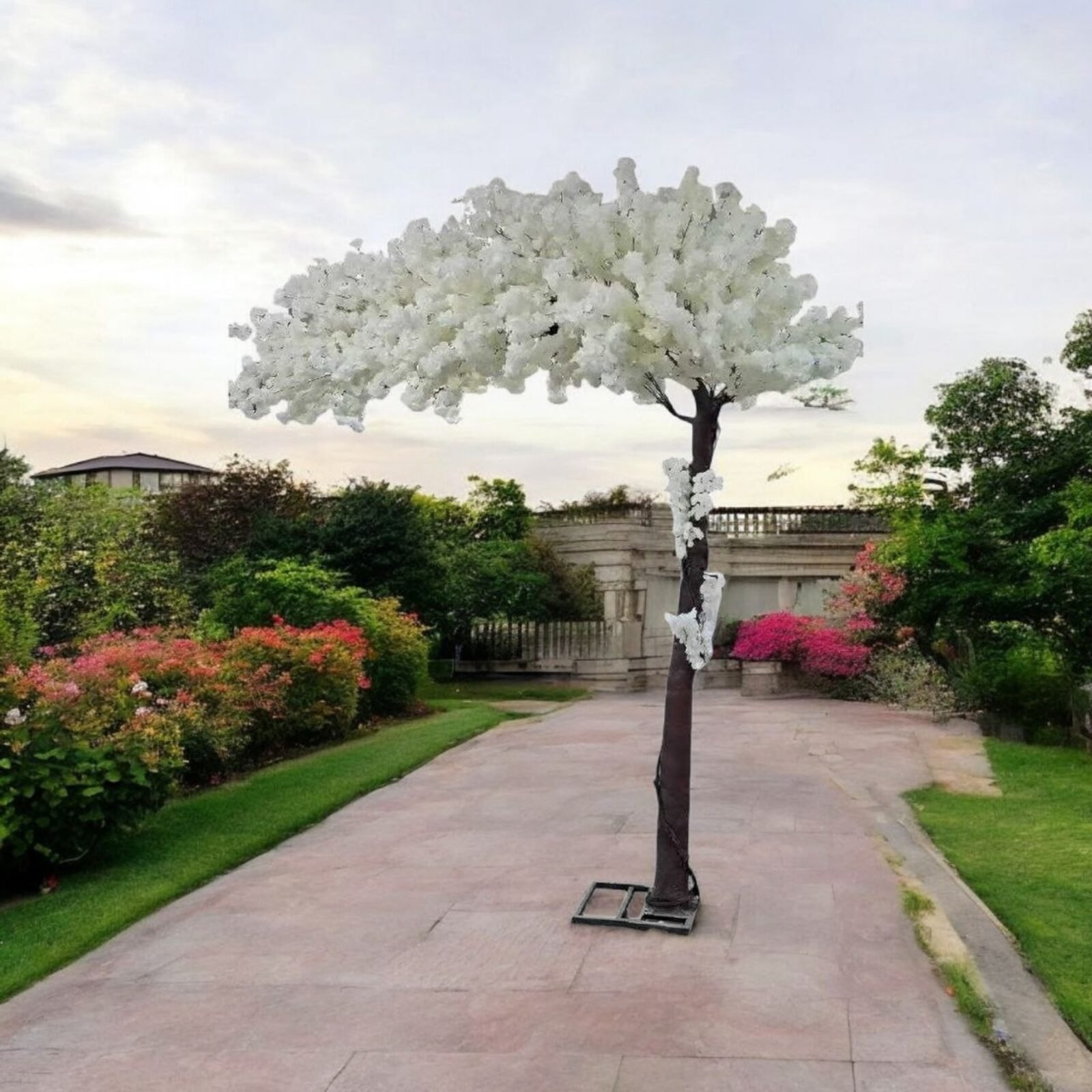 Encuentra diseños como el elegante árbol de cerezo artificial en tonos rosados, blancos o melocotón, que aportan un toque de sofisticación y frescura sin mantenimiento.