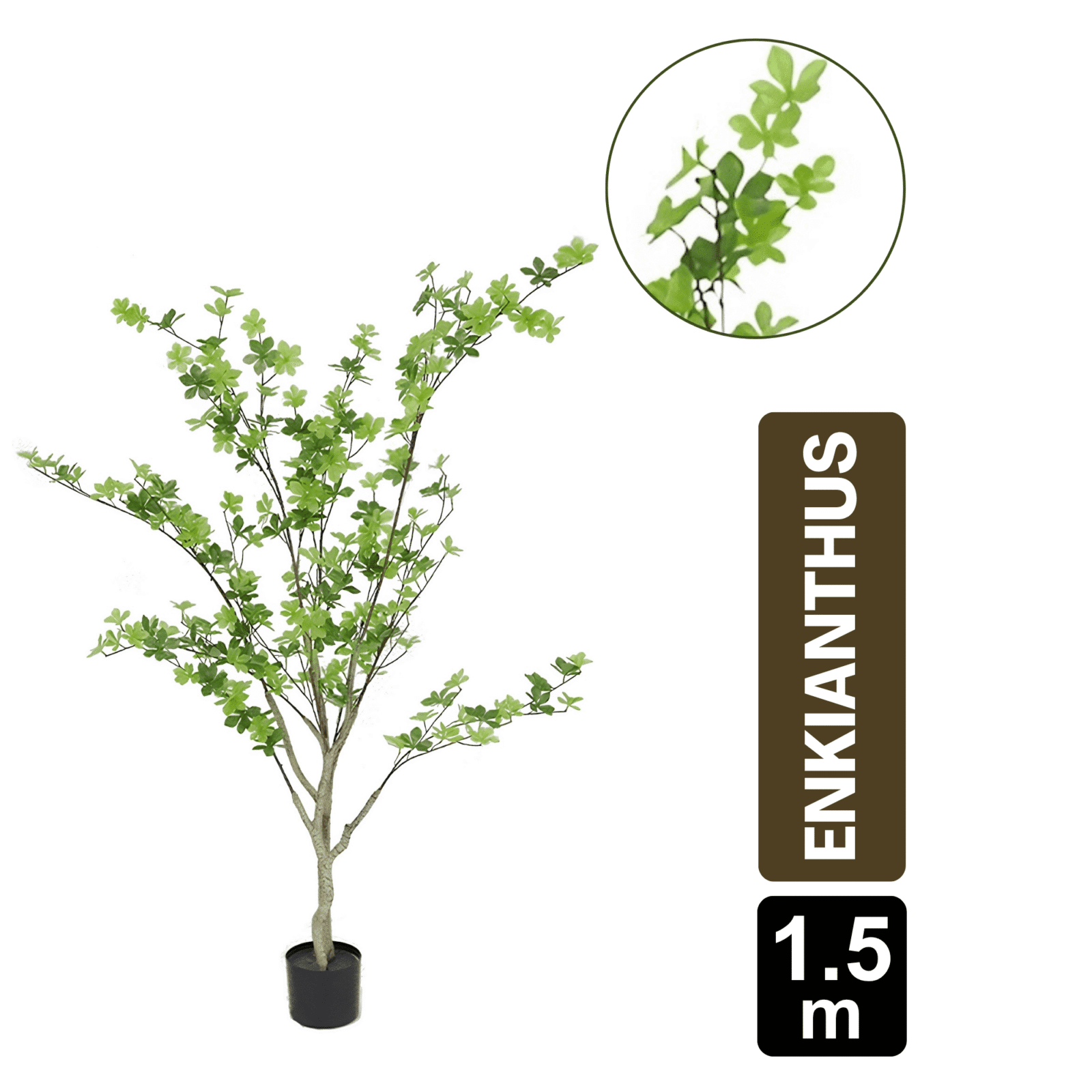 Agrega un toque de elegancia y frescura a tus espacios con la Mata Enkianthus Artificial de 150 cm. Su diseño realista y detallado recrea a la perfección la belleza natural de esta planta, brindando un ambiente acogedor sin necesidad de cuidados. Perfecta para hogares, oficinas, negocios o cualquier lugar donde desees disfrutar de la belleza natural sin esfuerzo.