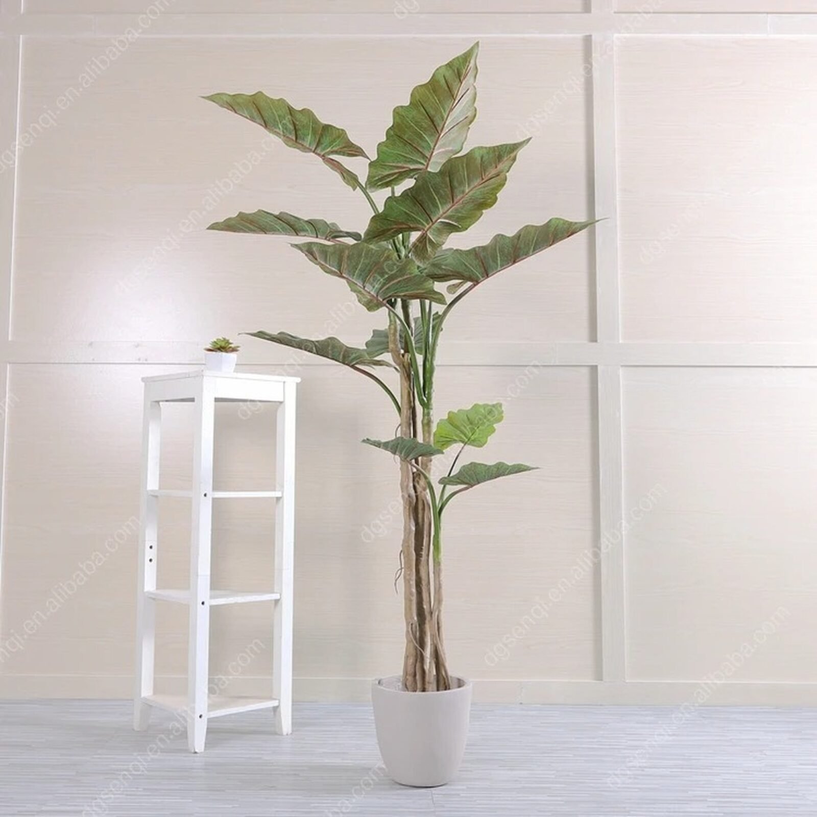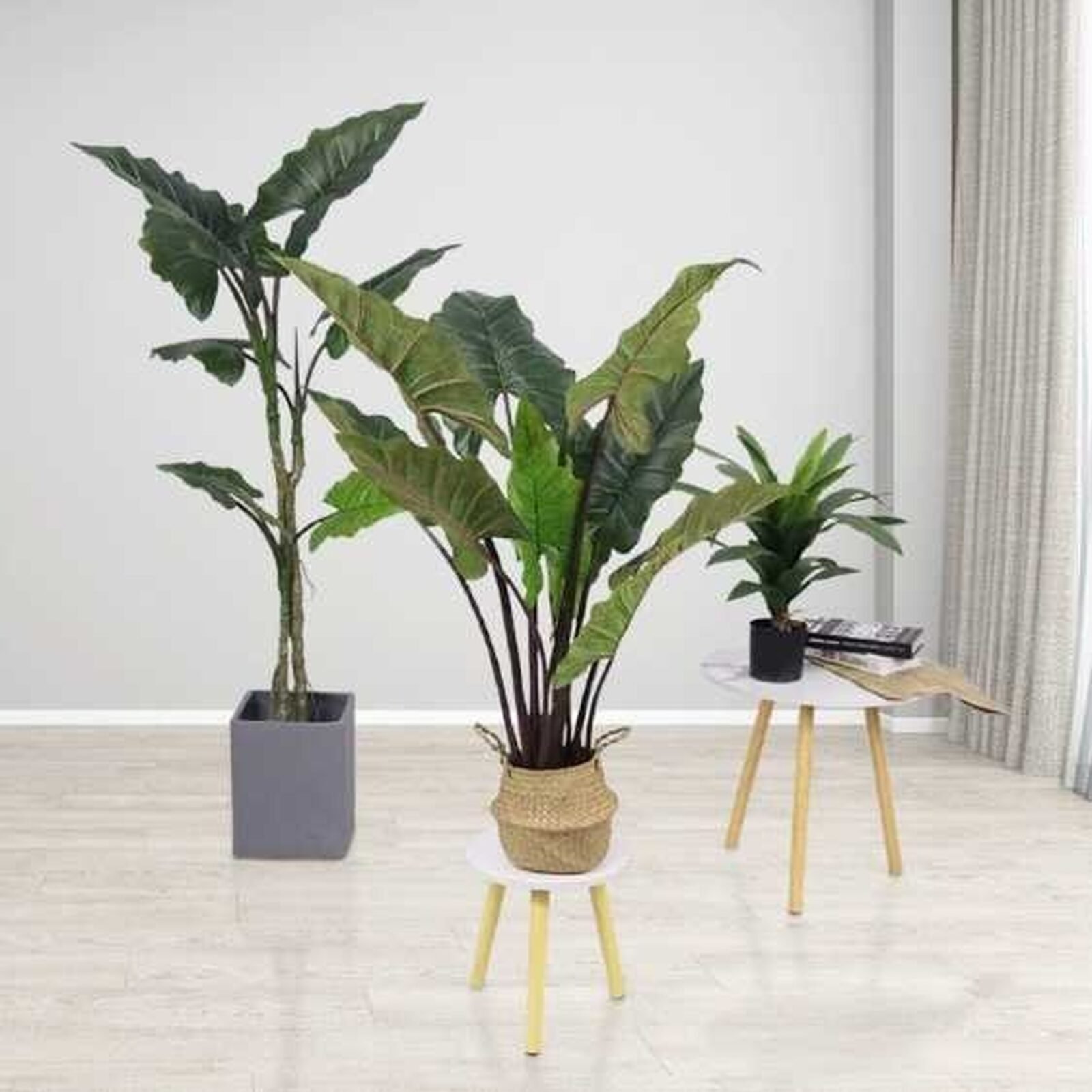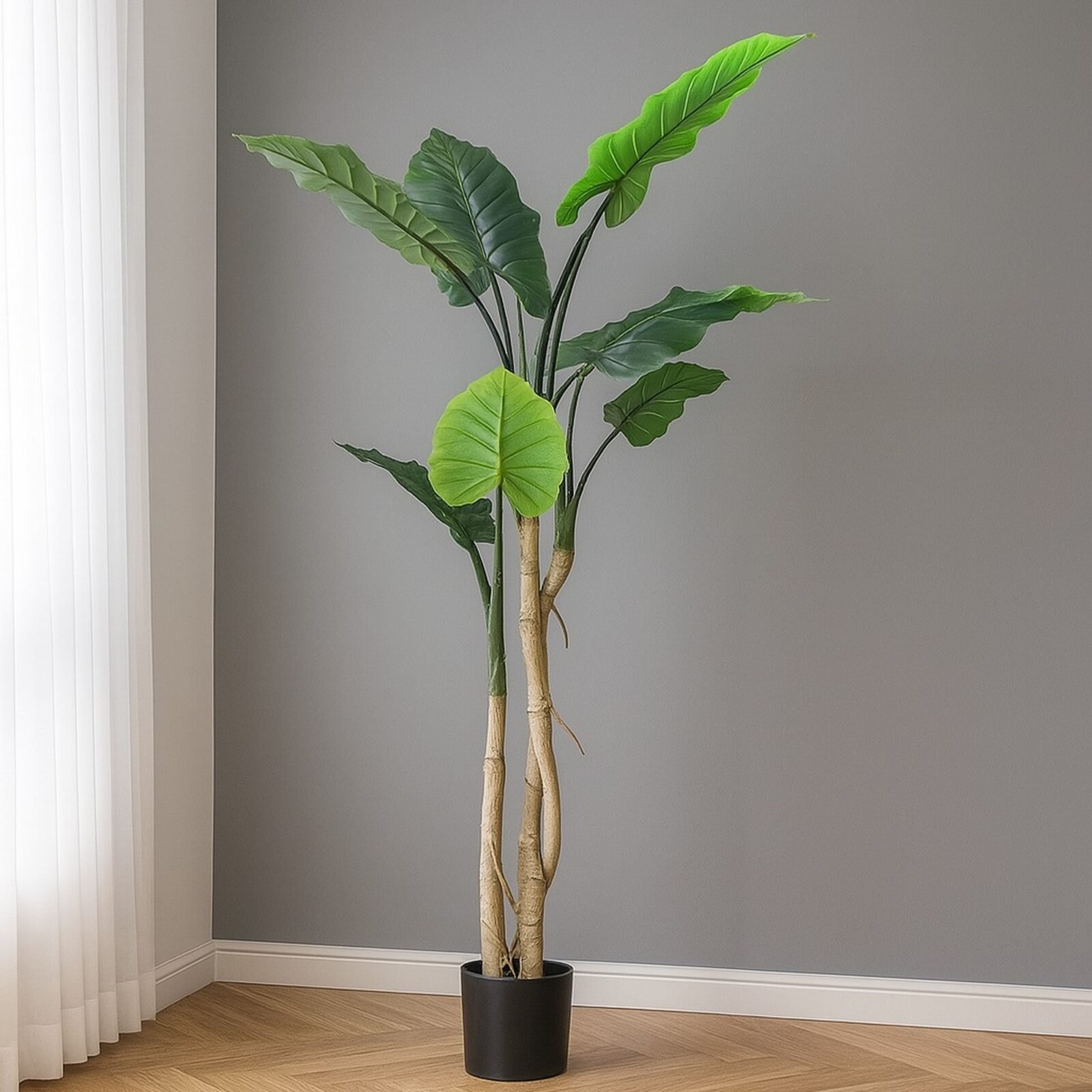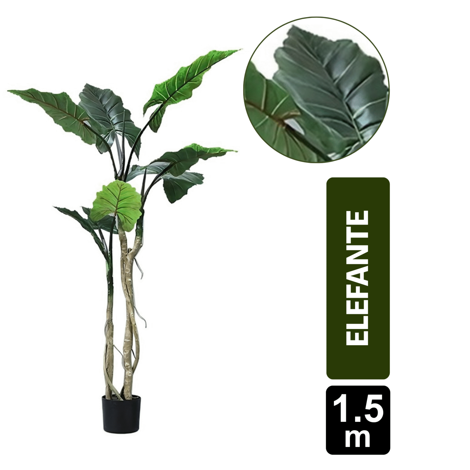 La Mata Oreja de Elefante artificial de 150 cm cuenta con 8 impresionantes hojas grandes y anchas, que imitan a la perfección la apariencia tropical de esta planta exótica. Con su tamaño imponente y su diseño realista, es ideal para crear un ambiente natural y sofisticado en cualquier espacio, ya sea en interiores o exteriores protegidos. Añade un toque de frescura sin necesidad de cuidados, manteniéndose siempre verde y vibrante, perfecta para quienes buscan una decoración llamativa y sin complicaciones.
