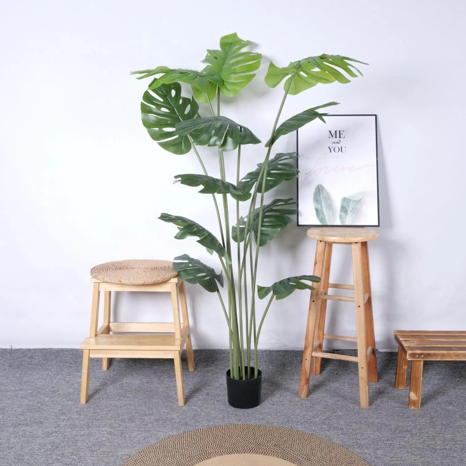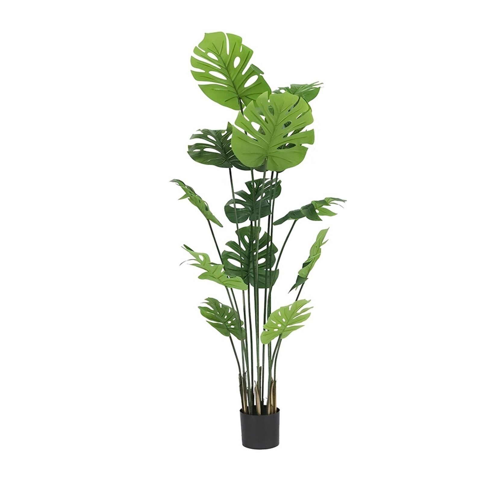 La Mata Costilla de Adán artificial de 180 cm es una opción impresionante para decorar cualquier espacio con un toque tropical y elegante. Con 12 grandes hojas que replican fielmente la icónica Monstera, esta planta ofrece una presencia exuberante y realista. Su altura y frondosidad la convierten en el centro de atención perfecto, añadiendo estilo y frescura a interiores o exteriores protegidos. Sin necesidad de mantenimiento, se mantendrá siempre verde y vibrante, brindando una belleza natural sin esfuerzo.
