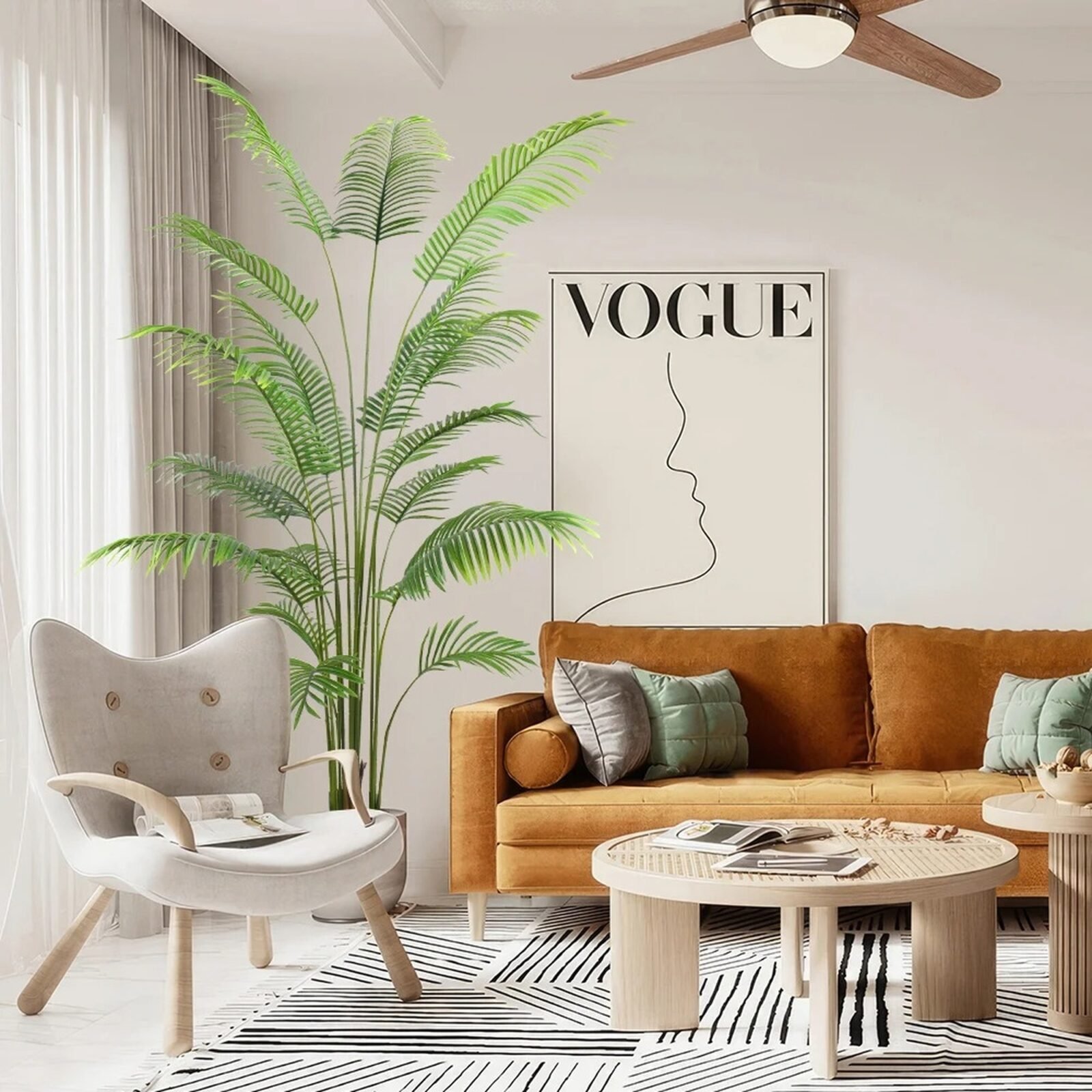 La Palma Areca artificial de 150 cm es la opción perfecta para agregar un toque tropical y fresco a tu hogar u oficina. Con 12 frondosas ramas cuidadosamente diseñadas, ofrece un aspecto natural y exuberante que complementa cualquier decoración. Ideal para espacios interiores o exteriores cubiertos, esta planta no requiere mantenimiento, manteniéndose siempre verde y vibrante sin necesidad de riego ni cuidados adicionales. Añade estilo y elegancia a tu ambiente de forma práctica y duradera.