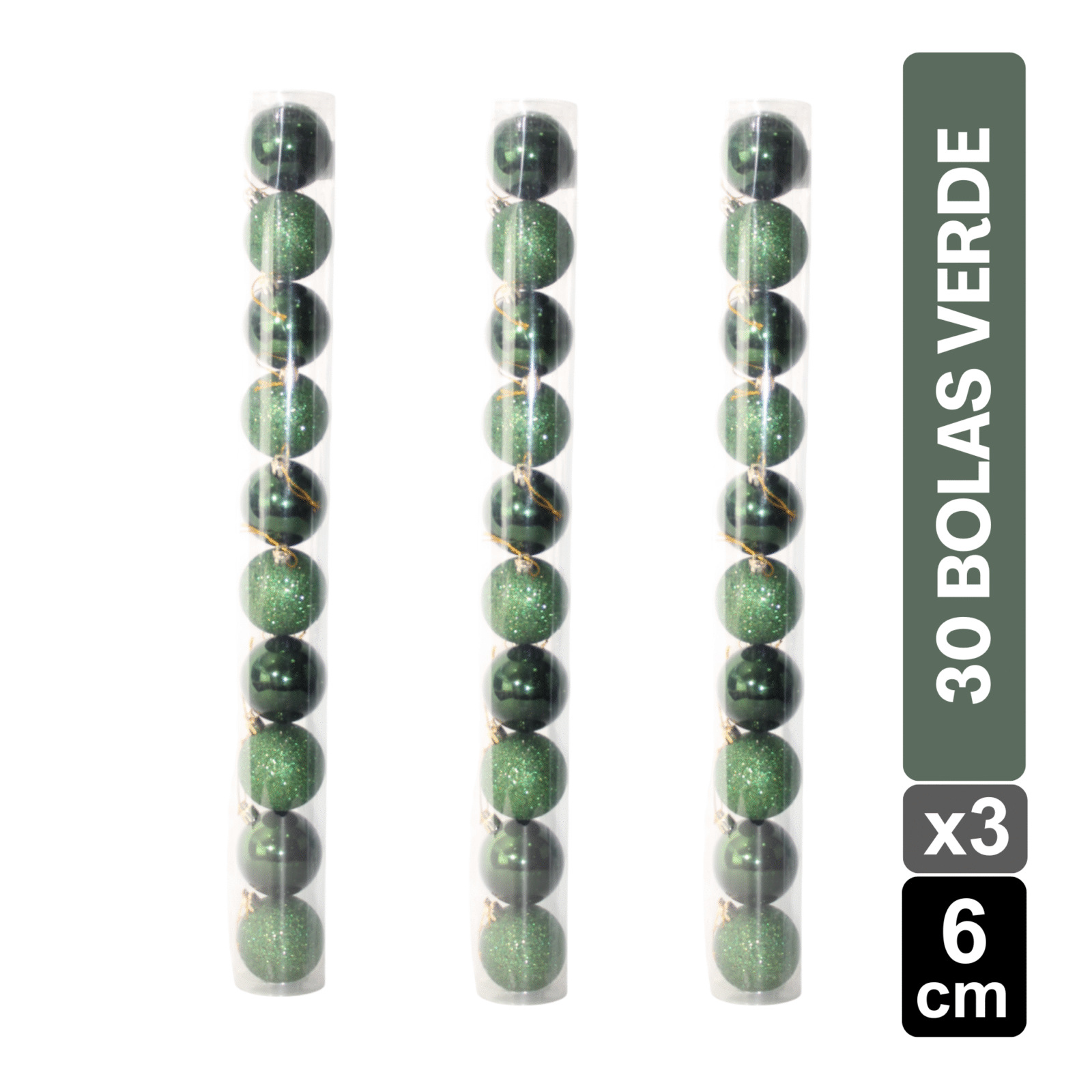 Set de 30 bolas navideñas Verde Esmeralda de 6CM, ideales para la decoración del árbol de Navidad.