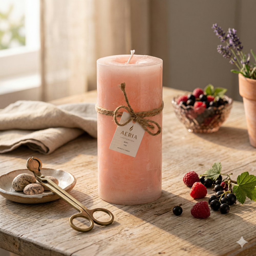 Vela Aromática Rústica Rosada 15 cm – Aroma Berry