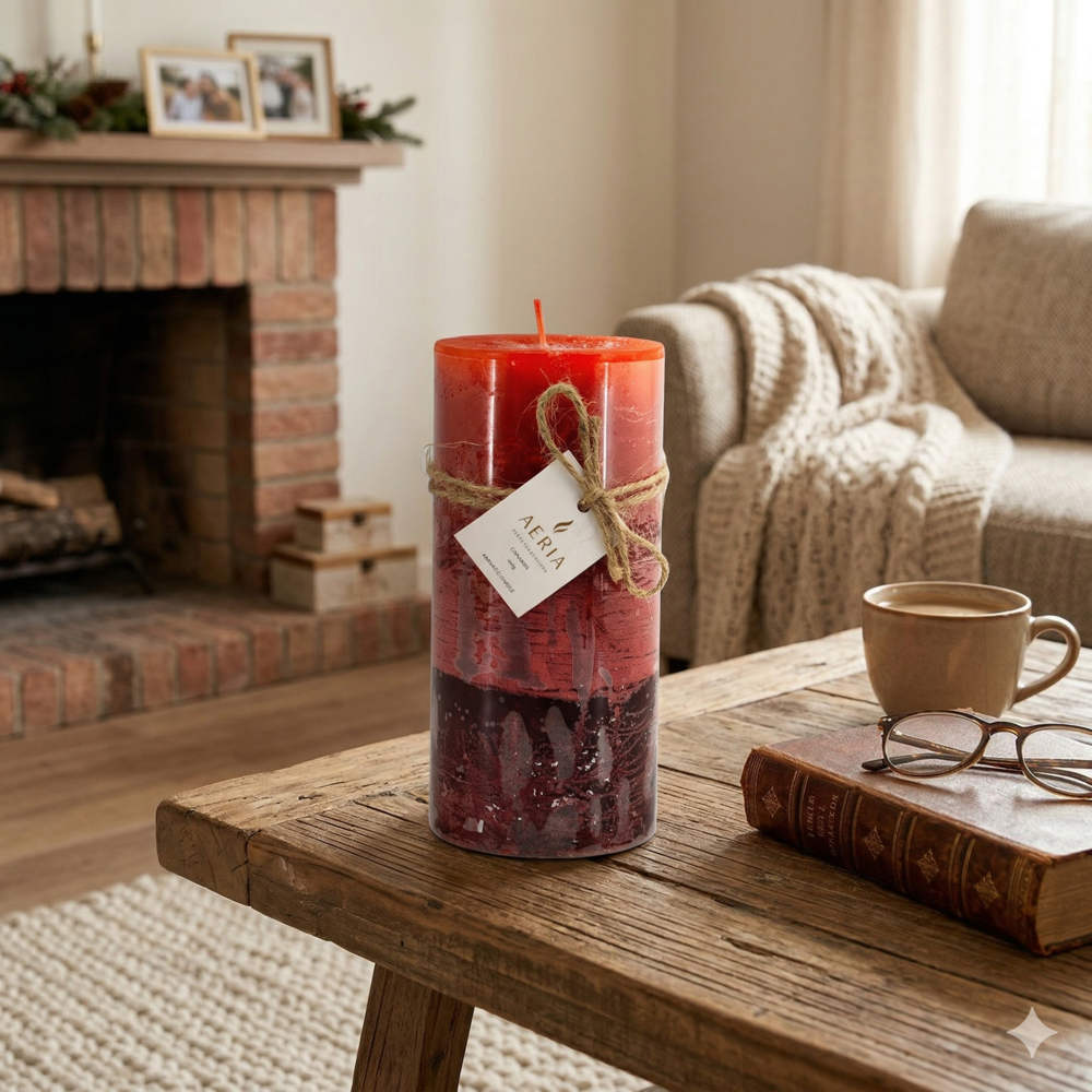 Transforme su hogar en un refugio de confort con esta vela de 15 cm de altura. Su diseño tricolor en tonalidades rojas ofrece un degradado visual cálido y dinámico, mientras que su fragancia a canela envuelve el ambiente con notas especiadas y acogedoras, ideales para crear una atmósfera de bienestar y tradición.
