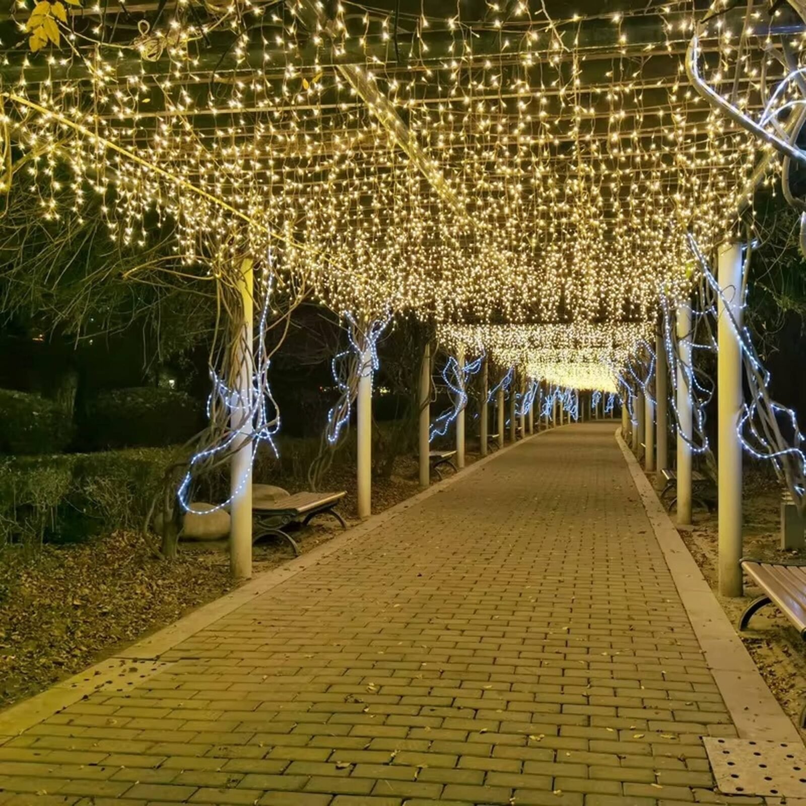 LUZ LLUVIA CALIDA X 300 LED FIJA CABLE BLANCO