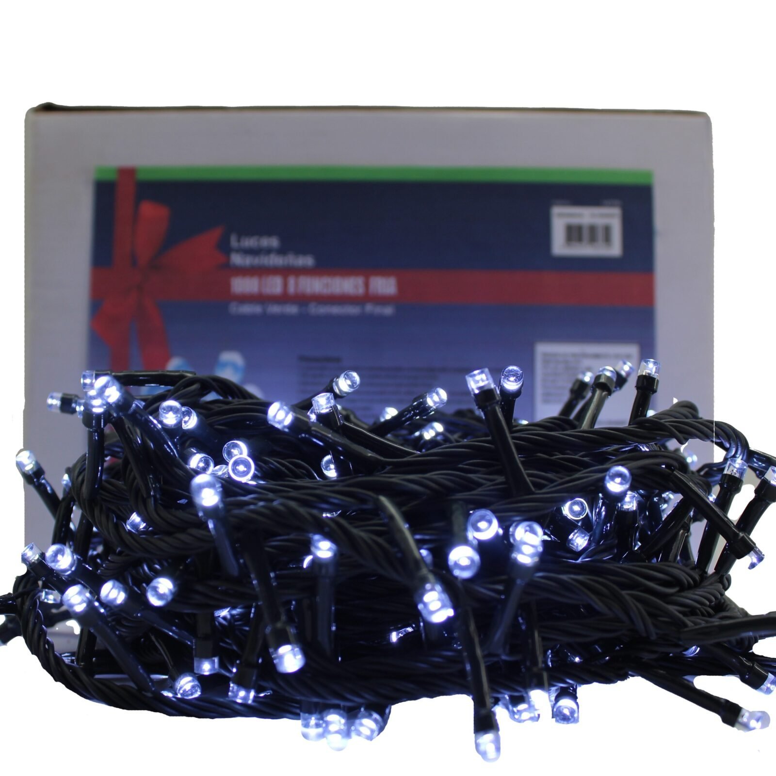 LUZ NAVIDEÑA CALIDA – FRIA X 1000 LED FIJA CABLE VERDE