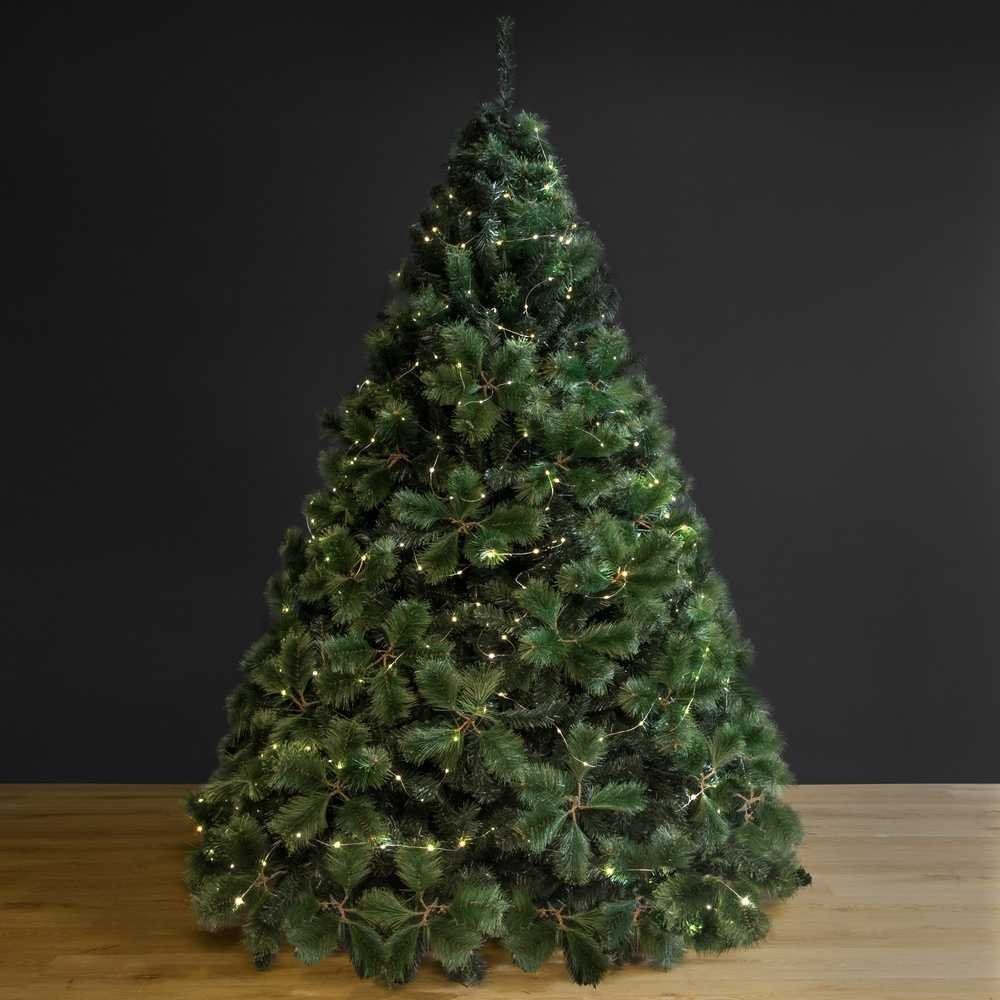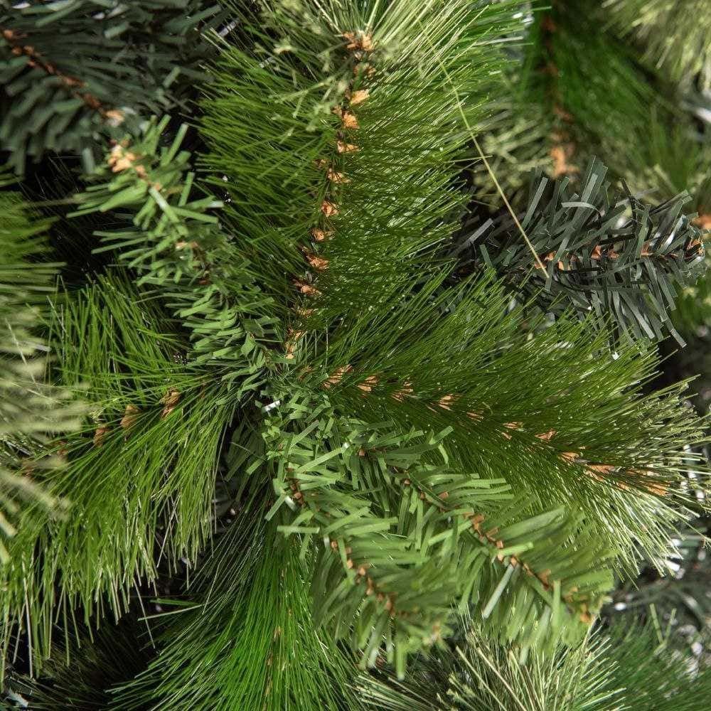 Diseño con ramas densas y uniformemente distribuidas que simulan la textura y forma de un pino natural.
