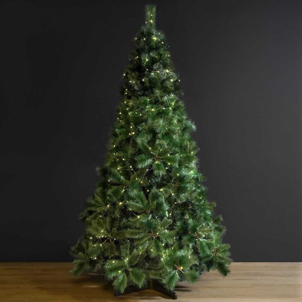 Diseño con ramas densas y uniformemente distribuidas que simulan la textura y forma de un pino natural.