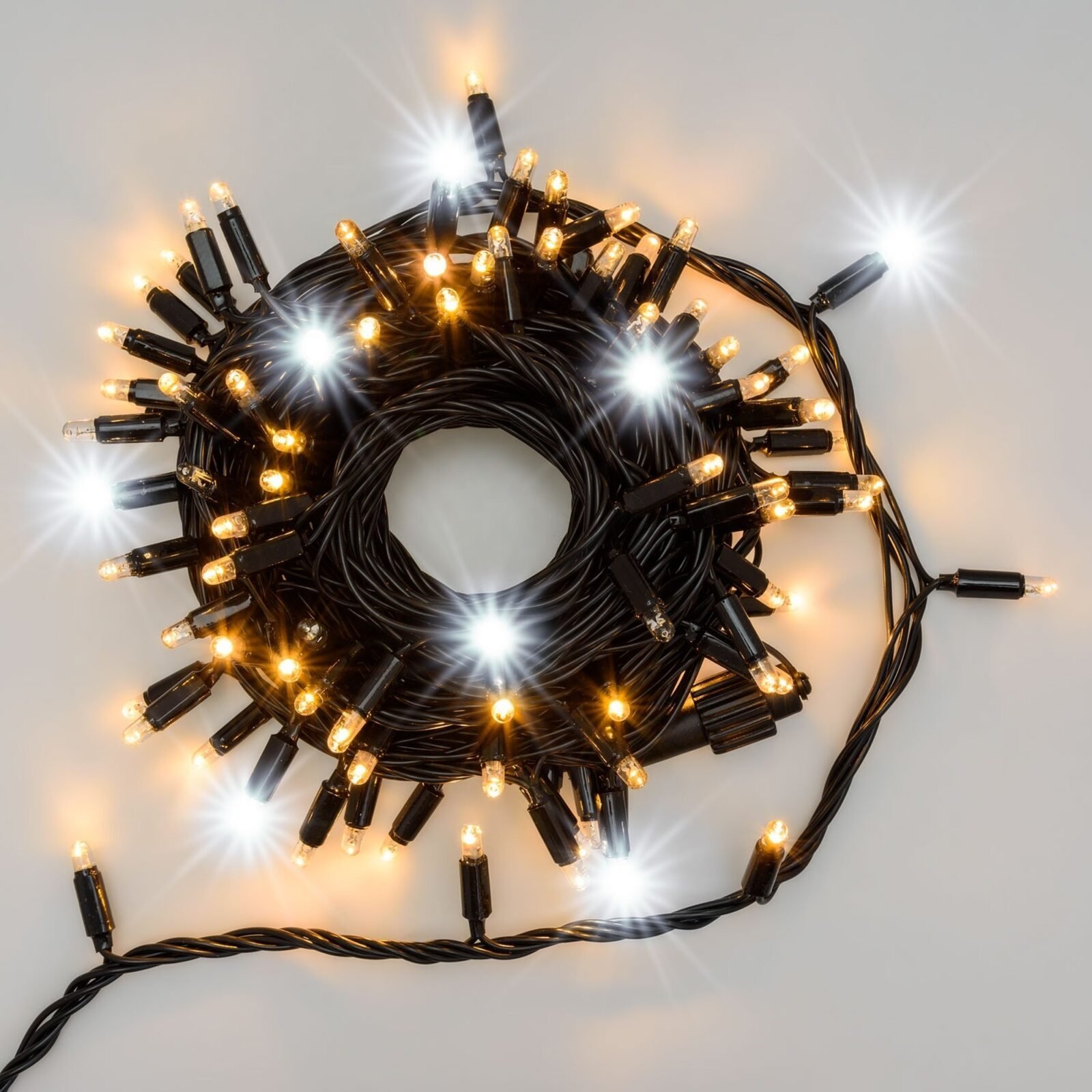 Luz de Navidad con 500 LEDs fijos, cable verde, conexión de extremo a extremo. Iluminación cálida con efecto sparkling, ideal para crear un ambiente festivo y encantador en tu decoración.